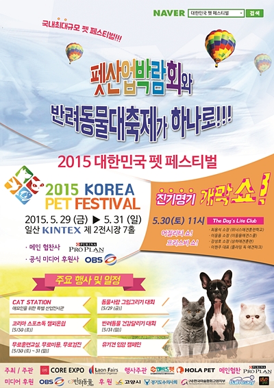 또한 30일(토) 오전11시에는 대한민국펫페스티벌을 축하하는 개막식이 펼쳐지며, 행사 마지막 날인 31일에는 ‘반려동물 건강 달리기대회’가 진행된다. 반려동물 건강달리기 대회는 견주와 반려견이 함께 50m를 달리는 행사이며, 무료훈련교실, 무료미용, 무료검진 등 다양한 부대행사가 함께 마련될 예정이다.