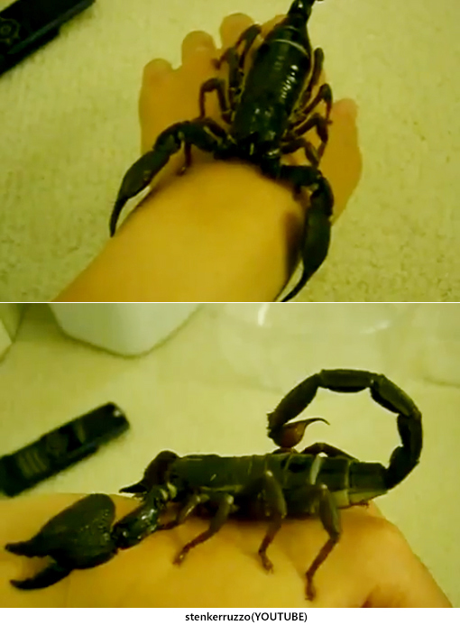 사람의 손바닥에서 꿈틀거리고, 또 팔뚝을 타고 오르는 전갈을 본 많은 이들은 "무시무시한 외모를 가진 전갈"이라면서 놀라움을 표시한다. 이 전갈은 말레이시아 등 아시아 남부가 원산이며, 집에서 사육하면 5~8년을 사는 것으로 알려졌다. 위키백과에 따르면 인디언 자이언트 포레스트 전갈이 세계 최대의 전갈 종이며, 기록된 최대 길이는 23cm 이다.