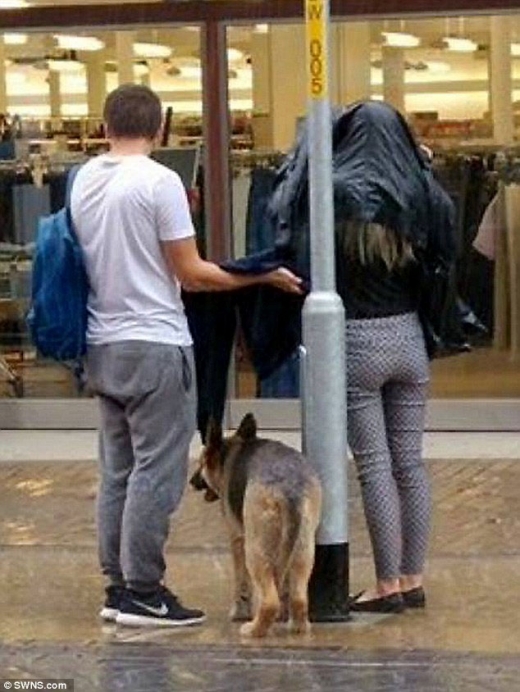 당시 이 커플 중 남성은 개를 보자마자 자신의 외투를 벗어 개와 여자 친구가 비를 맞지 않도록 감쌌다. 잠시 비를 피하는가 싶었지만 금세 외투는 젖어버렸고, 커플은 개가 또 다시 비와 추위에 싸울 것이 걱정돼 자리를 떠나지 못했다.