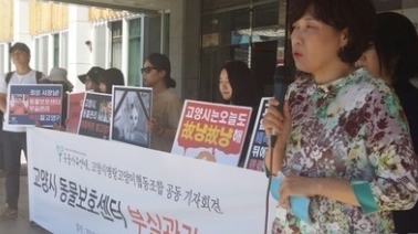 동물보호단체인 동물자유연대(대표 조희경)와 고양시명랑고양이협동조합(이사장 서주연) 회원들은 17일 오전 고양시청에서 고양시 동물보호센터 부실관리에 대한 책임을 촉구하는 기자회견을 개최했다.