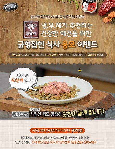 시저 마케팅 최선영 상무는 "이번 이벤트는 최근 400만뷰를 돌파하는 등 냉장고를 부탁해 애견편에 대한 소비자들의 열광적인 반응에 힘입어 최현석 셰프, 김풍 작가, 김성주 MC가 직접 선택한 시저 캔의 다양한 맛을 소개하고, 완전히 균형 잡힌 웰메이드 건강식인 시저의 장점을 친근하게 알리기 위해 기획됐다"면서 "앞으로도 습식 사료에 익숙하지 않은 견주들을 대상으로 습식 사료에 대한 인식을 개선하고 제품 신뢰도를 높일 수 있도록 다양한 이벤트를 진행할 계획"이라고 말했다.