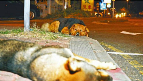 이 보도에 따르면 홍콩 시내 한 도로가에서 함께 지내던 친구가 차에 치여 숨지자 같이 다니던 강아지가 곁을 떠나지 않고 자리를 지켰다.