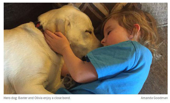 지난 19일(현지날짜) 영국 스코틀랜드 남서부 글래스고에 사는 '박스터'라는 이름의 9개월 된 래브라도 리트리버가 6살 소녀 올리비아의 목숨을 구했다고 영국 일간 익스프레스 등 현지언론이 보도했다.