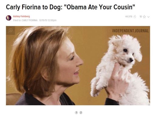 피오리나는 이날 인디펜던트 저널을 통해 공개한 ‘개가 왜 고양이보다 더 좋은가'라는 제목의 1분55초짜리 동영상에서 소파와 방바닥에 앉아 다양한 종류의 애완견과 어울리면서 “개는 당신의 경호 역할을 할 수도 있다”며 개의 여러 장점을 한껏 자랑한다.