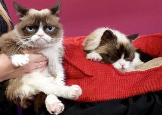여성 주인 타바사 번데센을 '돈방석'에 올려놓은 그럼피 캣의 진짜 이름은 타르다 소스(Tardar Sauce). 소스는 인터넷의 인기를 바탕으로 유튜브 채널 개설, 광고 모델, 온라인 게임 출연, 출판작가 등 종횡무진 활약 중이며 지난해 연말에는 크리스마스 영화에 주연배우로도 출연했다.
