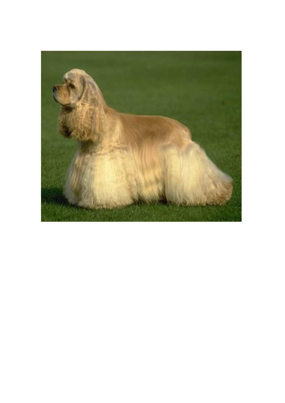 △ 원산지·용도 : 미국. 가정견△ 성격·습성 : 영리하며 활동적이고 낙천적이며 사교성이 좋고 순종적임△ 크기 : 36~38cm (체고·성견기준) △ 체중 : 9~16kg (성견기준) △ 외모 : 전체적으로 꽉찬 완벽한 균형과 늘어진 귀, 세련된 둥근 두상△ 털·색상 : 길면 화려한 갈색, 검은색, 미색, 황갈색등 다양.
