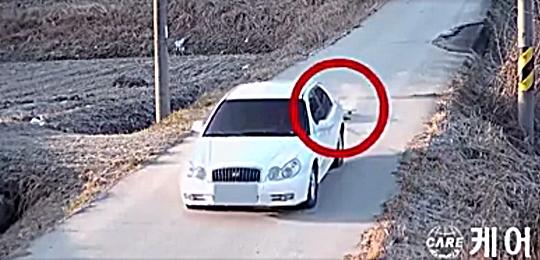 케어가 공개한 현장 사진에는 차의 진행방향에 따라 도로에 직선을 그리고 있는 개의 혈흔이 선명하다. 탈진한 개가 흰색 소나타 차량에 끌려가는 장면도 CCTV에 고스란히 담겼다.
