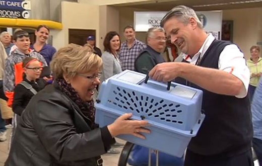 주인에게 기적적인 소식을 전해온 곳은 따뜻한 남쪽지역에서였다. 플로리다주 네이플스의 동물보호소에서 나디아를 보호 중에 있다는 연락을 받게된 것으로 체내에 삽입된 마이크로칩 덕이었다.