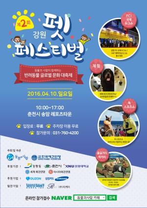 이번 강원 펫 페스티벌은 강원도와 춘천시, 춘천시문화재단, 강원대학교, 삼성카드, 더존IT그룹 등이 후원하고, 내추럴발란스코리아, 리케이 등이 협찬한다.