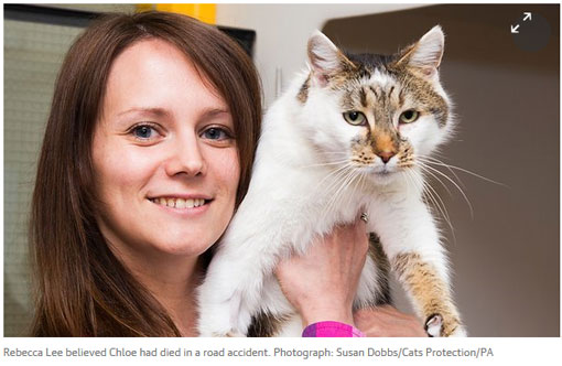 24일(현지시각) 영국 가디언과 데일리메일 등은 2010년 웨일즈 남부 카디프 인근 도시 케이필리에서 실종됐던 고양이 ‘클로리’가 최근 고양이 보호단체를 통해 다시 원래 보호자(주인)에게 레베카 리에게 돌아갔다고 전했다.