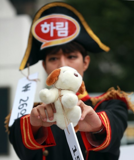 카라 등 동물보호단체들은 이날 서울 종로구 정부서울청사 앞에서 기자회견을 열고 농림축산식품부에 경매장 조사와 단속 강화를 요구했다. 이들은 또 경매에 나온 일부 동물은 이빨도 나지 않은 2개월령 이하로 보여 동물보호법 위반이 의심된다고 주장했다.