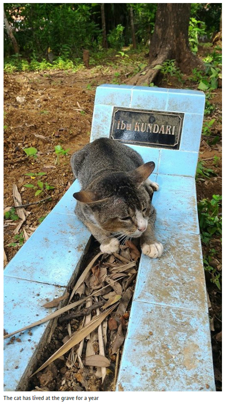 최근 영국 미러 등 외신들에 따르면 이름이 알려지지 않은 고양이 한 마리가 인도네시아 센트럴자바의 한 묘를 떠나지 않고 있다.