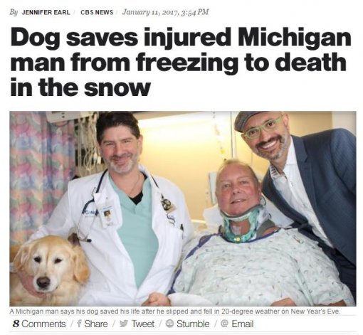 미국 CBS뉴스는 최근 미시간주에 사는 밥이라는 중년 남성이 지난해 12월 31일 사고를 당했으나 반려견 켈시의 도움으로 위기에서 벗어나게 된 사연을 전했다.