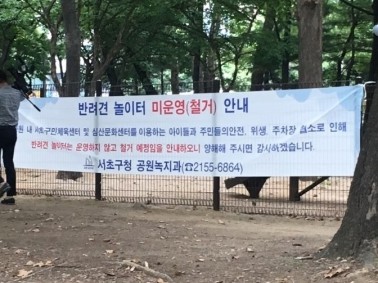 그러나 일부 주민들의 반대로 이 계획은 결국 무산됐다. 반려견 놀이터 조성을 반대한 주민들이 냄새가 나고 털이 날리는 등 위생상 문제와 목줄하지 않은 반려견에 의해 물림 사고 등이 발생할 수 있다고 항의해 서초구가 철거를 결정했다.