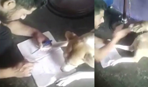 최근 소셜미디어를 통해 확산한 영상에는 한 남성이 강아지 발에 연필을 쥐게 하고, 알파벳을 외우라고 강요하며 폭행하는 비상식 적인 모습이 담겼다.