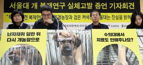 그러면서 "서울대 동물실험윤리위원회는 식용견이 동물실험에 쓰인다는 것을 알고도 별다른 조치를 하지 않았다"며 "서울대는 책임자를 문책하고 재발방지 대책을 세워야 한다"고 촉구했다.