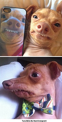 치와와 닥스훈트의 유전자가 섞인 이 개의 이름은 '튜나'다. 이 개가 인기를 끄는 이유는 개성이 넘치는 외모 때문이다.