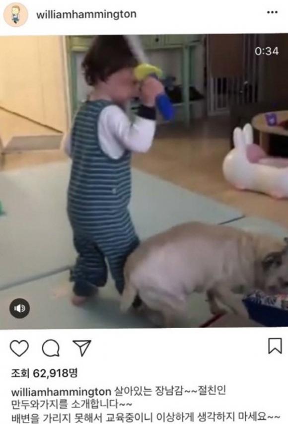 앞서 샘해밍턴 아내는 아들 윌리엄이 강아지를 장난감으로 때리는 듯한 모습이 담긴 영상을 공개했다. 그는 이 상황에 대해 “살아있는 장난감~ 절친인 만두와 가지를 소개합니다. 배변을 가리지 못해서 교육중이니 이상하게 생각하지 마세요”라고 설명해 애완견 학대 논란에 휩싸였다.