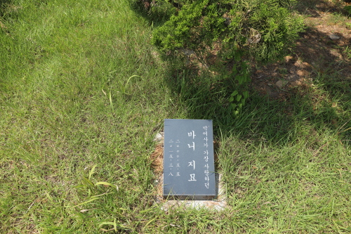지난 23일 타계해 영면한 김 전 총리의 가족묘원에 김 전 총리부부와 15년간 함께 했던 반려견 ‘바니의 묘’가 확인됐다. 충남 부여군 외산면 반교리에 위치한 김 전 총리의 가족묘원은 최상단에 김 전 총리와 6형제의 묘역이 위치해 있다. 최상단 바로 하단에는 김 전 총리 형제들의 2세들 묘역인데 바니의 유골은 이곳에 묻혔다. 반려견인 바니를 자식 서열에 올린 것이다.