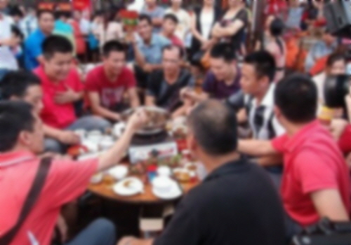 개고기 축제에 참여한 중국 시민들 모습. 개, 고양이 고기기로 차려진 음식을 먹고 있다.