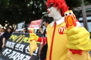 지난 20일 동물자유연대는 서울 종로구 한국맥도날드 본사 앞에서 ‘케이지 프리(cage-free)’ 선언을 촉구하는 퍼포먼스를 벌였다. 이날 연대는 “공장식 사육환경에서 길러진 닭은 평생 날개조차 펴 보지 못하고 A4용지보다 작은 공간에 갇혀 기계처럼 알만 낳다 죽는다”며 “한국맥도날드가 잔인한 달걀 사용을 즉각 중단해야 한다”고 강조했다.