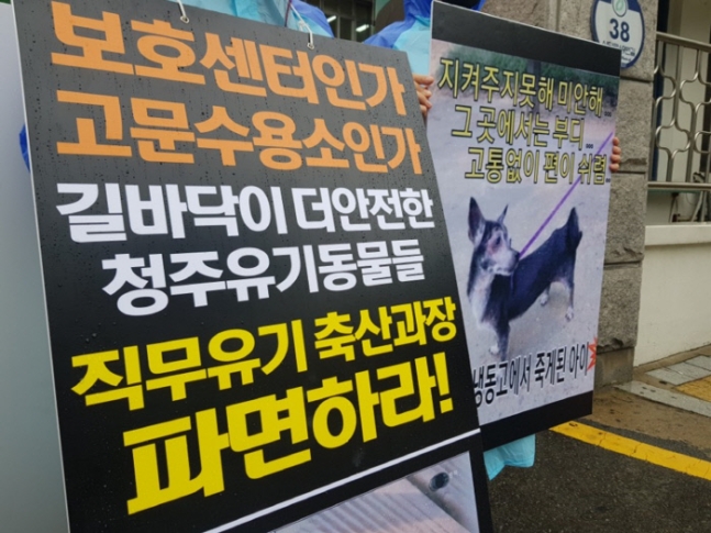 연 본부장은 28일 청주 반려동물보호센터장 ㄱ씨를 동물보호법 위반 혐의로 고발했다. 연 본부장은 ㄱ씨가 유기견을 산 채로 냉동고에 넣거나 그늘막이 없는 마당이나 차 트렁크에 넣어 방치해 죽게했다고 주장했다.