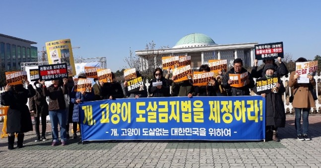 이들은 "우리나라에 개농장과 개산업이 존재할 수 있었던 것은 청와대와 정부, 국회의 무책임하고 불법적인 방관·방치 때문"이라며 "더이상 불법적인 개·고양이 도살을 지켜볼 수 없기 때문에 하루빨리 도살 금지법이 제정되어야 한다"고 강조했다.