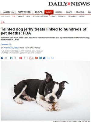 최근 뉴욕 데일리뉴스는 미국 식품의약국(FDA) 조사 결과 지난 2007년부터 애완견 3600여 마리가 중국산 불랑 간식을 먹고 질병에 걸렸다고 보도했다.