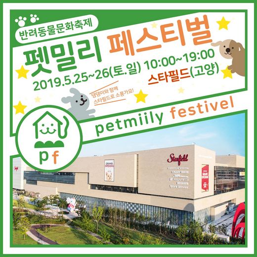 더펫코리아는 오는 5월 25일(토)과 26일(일) 양일간 오전 10시부터 오후 7시까지 고양 스타필드 동측 광장 일원에서 ‘2019 펫밀리페스티벌 in 고양 스타필드’를 개최한다.