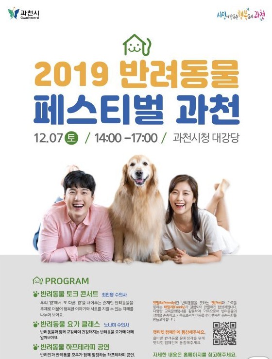 과천시는 오는 7일 오후 2시 시청 대강당에서 '반려동물 페스티벌'을 진행한다.