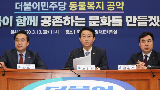 조정식 정책위의장은 이날 오전 국회에서 총선 공약 발표식을 갖고 "민주당은 반려동물에 대한 복지체계를 강화하고 동물복지에 대한 사회 전반의 인식과 제도를 제고하겠다"며 이같이 밝혔다.