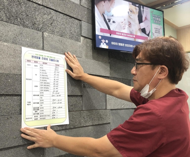 도는 경남수의사회와 협의해 마련한 반려동물 진료비 자율표시제 표지판 표준안에 따라 병원 내부에 부착할 수 있는 표지판을 제작해 지난달 각 병원에 배포·설치했다.