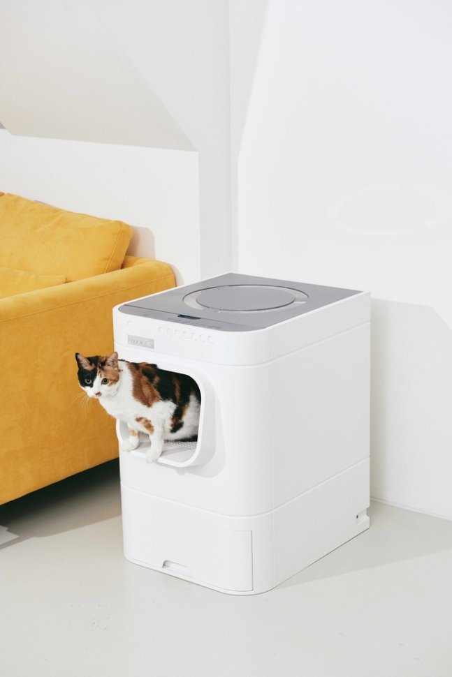 이번에 출시한 '라비봇2'는 고양이가 네모난 상자 형태의 본체 안에 들어가 배변을 하면 자동으로 배설물을 처리해주는 제품이다.