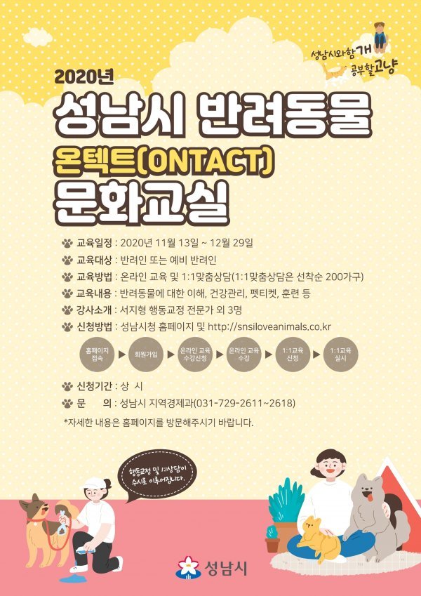 성남시가 오는 12월 29일까지 ‘온라인 반려동물 문화교실’을 운영한다.