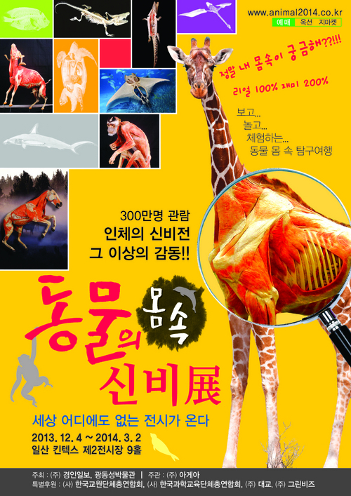 이번 전시에선 해부나 동물 관련 책자에서나 볼 수 있는 동물의 생생한 몸 속을 만날 수 있다. 국내 최초로 공개되는 470㎝ 기린, 450㎝ 밍크고래와 코끼리, 쥐가오리, 말, 타조 등 어류 양서류 파충류 조류 포유류에 이르기 까지 각종 동물이 껍질만 살짝 벗은 채로 뼈와 근육을 드러낸다. 물고기ㆍ개구리 해부교실, 4D영상체험관, 동물모형 만들기, 애완동물 만져보기 등의 체험 프로그램도 운영된다.