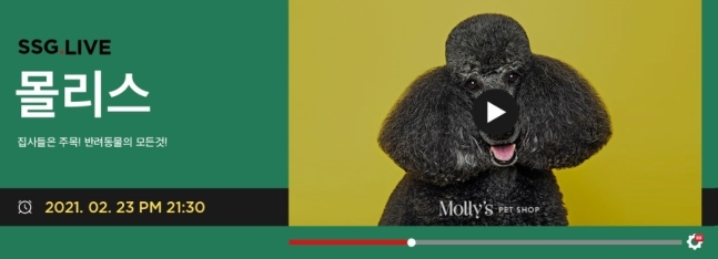 SSG닷컴은 이번 방송에서 반려동물 전문 오프라인 매장 몰리스를 소개하고 간식, 사료 등 인기 상품을 선보일 계획이다. 특히 몰리스 성수점 마스코트 강아지 자이언트 푸들 '틸슨'이 직접 출연해 간식 '먹방'을 진행할 예정이다.