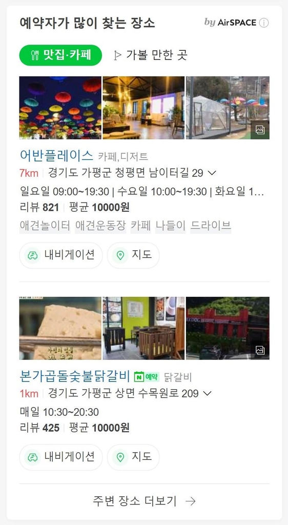 에어스페이스는 네이버 지도 앱 '주변 추천' 탭 등에도 적용돼있다.