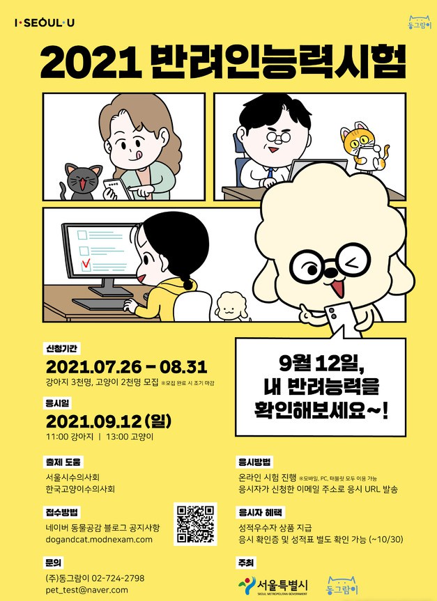 반려인 능력시험은 서울시와 ㈜동그람이가 지난 2019년부터 개최해 올해 3회째를 맞는다. 반려인이나 예비 반려인이 자신의 반려동물에 대해 얼마나 많이 알고 있는지 확인해보고 자격있는 반려인으로서 공부할 수 있는 기회 등을 제공한다.