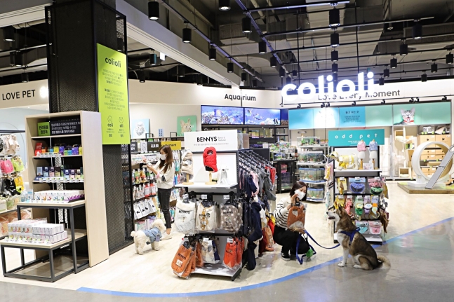 콜리올리 매장에는 유통업계 최초로 반려동물 건강기능식 특화 존이 구성됐다. 회사 측은 “반려동물 병원, 미용실, 보험, 장례부터 반려동물 인식표 맞춤 제작, 펫 전용 사진 촬영 공간 제공 서비스도 제공한다”고 설명했다.