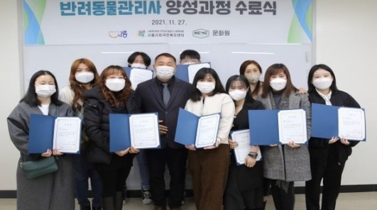 경기 시흥시는 전국 최초로 '외국인 주민을 위한 반려동물관리사 양성 프로그램'을 지난 10월 30일 개강해 매주 토·일요일마다 5시간씩 총 50시간, 10회 교육을 진행했다. 반려동물 훈련학 개론과 행동심리학 실무 등으로 진행됐다.
