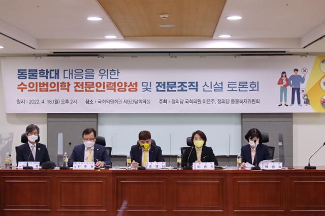 최근 서울 여의도 국회의원회관에서 열린 '동물학대 대응을 위한 수의법의학 전문인력 양성 및 전문조직 신설 토론회'에서는 늘어나는 동물 학대를 입증하고 학대 가해자를 처벌하기 위한 방안으로 수의법의학을 활용한 동물 부검의 중요성이 논의됐다. 이날 토론회는 이은주 정의당 의원과 정의당 동물복지위원회가 공동 주최했다.