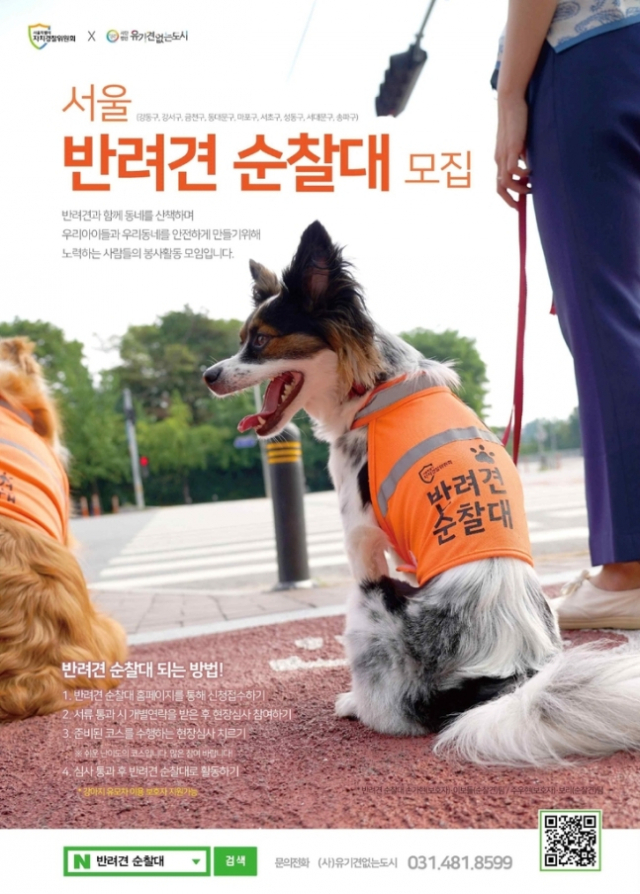 서울시 자치경찰위원회는 반려견과 산책하면서 방범 활동을 하는 '서울 반려견 순찰대'를 9개 자치구로 확대해 운영한다고 최근 밝혔다.