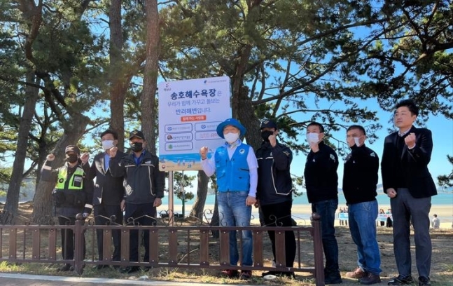 입양단체와 코디네이터인 (사)연안환경보전연합회 관계자 등 90여 명은 이날 해수욕장에서 반려 해변 입간판 설치 기념식과 정화 활동, 해양환경 교육 행사를 했다.