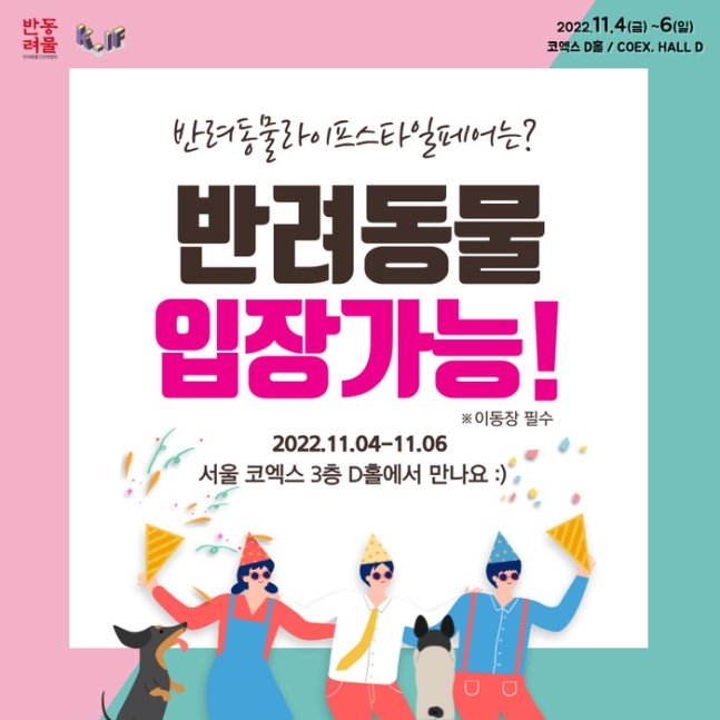 반려동물의 신체적 건강과 정신적 안정, 삶의 질 개선을 추구하는 ‘반려동물 건강박람회-라이프스타일페어’가 오는 4~6일 서울 코엑스에서 열린다. 캐리어, 슬링백, 유모차 등 별도 이동수단을 갖추면 반려동물과 동반입장이 가능하다.