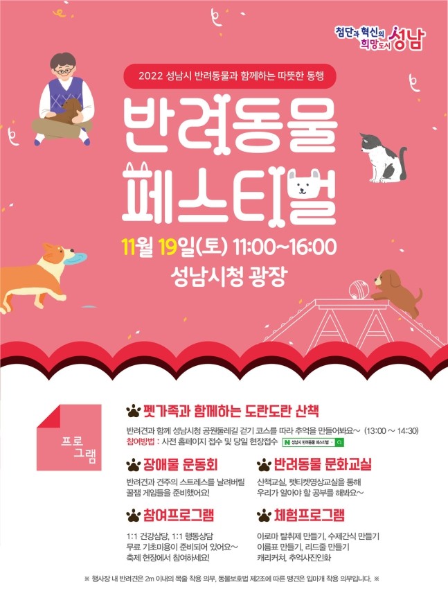 경기 성남시가 오는 19일 오전 11시~오후 4시 시청 광장에서 ‘2022 반려동물 페스티벌’을 개최한다.