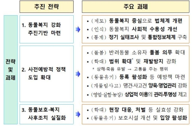 이 밖에 동물복지 정책을 논의·조정하는 동물복지위원회를 차관급으로 격상하고 농식품부 내 동물복지 정책 전담 기구를 신설한다.
