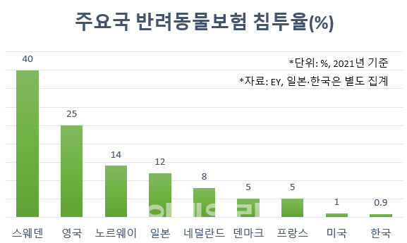 대표 복지국가로 알려진 스웨덴은 1924년 보험회사 아그리아가 개를 대상으로 한 보험을 출시하면서 펫보험을 처음 도입한 국가다. 많이 내고 많이 받는 ‘고복지-고부담’ 구조의 의료복지 체계 특성상 반려동물 건강관리에 대한 수요도 높은 편이다. 2022년 기준 약 100만마리의 개와 140만마리의 고양이가 반려동물로 등록됐다.