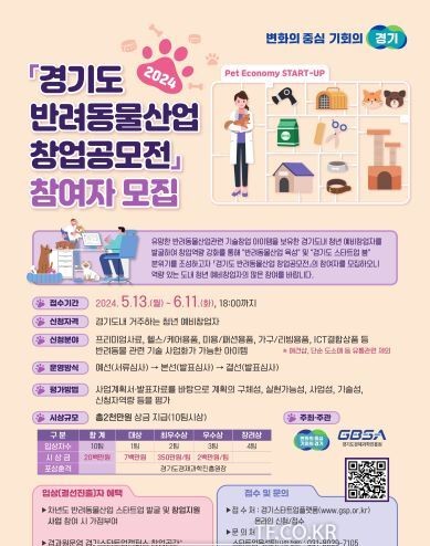 박연경 도 반려동물과장은 "반려동물산업 창업공모전을 통해 혁신적인 아이디어를 가진 도내 청년 예비창업자를 발굴·육성하고 더 성장할 수 있는 창업생태계를 구축하겠다"고 말했다.