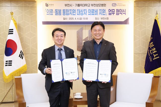 부천시(시장 조용익)는 지난 4일 가톨릭대학교 부천성모병원(병원장 김희열)과 의료 취약계층을 위한 `의료·돌봄 통합지원 업무협약`을 체결했다고 밝혔다.