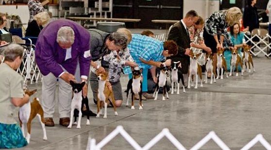 | 미국 도그쇼에 참가중인 록산클럽의 바센지-좌측에서 4번째 | ||